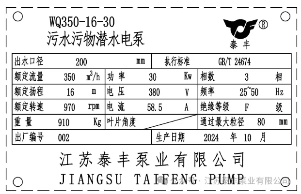 江蘇泰豐泵業有限公司始建于1969年,由原江蘇泰豐潛水電泵廠(集團)于2001年改制成立。公司是國內最早設計、制造潛水電泵的廠家之一,是原國家機械工業部重點企業、中國排灌機械協會副理事長單位,原國家水利部、煤炭部定點企業。
